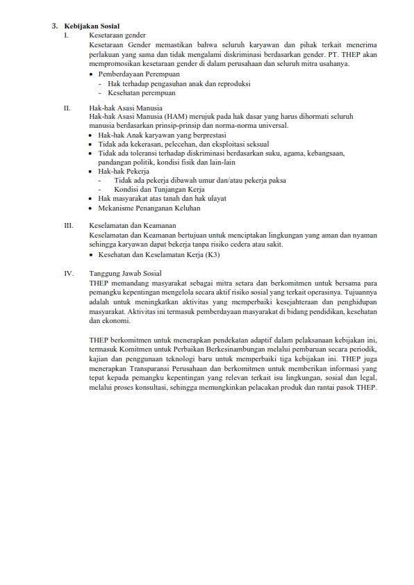 PT. THEP berkomitmen dalam melaksanakan aktivitasnya mengutamakan keselamatan dan kesehatan kerja. Aktivitas spraying ( penyemprotan) herbisida di salah satu afdeling Kebun Balunijuk Estate 4, seluruh pekerja diwajibkan menggunakan Alat Pelindung Diri yang disediakan oleh perusahaan secara gratis sesuai dengan tingkat resiko bahayanya. Untuk memastikan efektivitas APD dan kesadaran penggunaannya oleh pekerja, Dept HSE (Health Safety & Environment) PT. THEP melakukan supervisi dan sosialisasi secara reguler kepada para pekerja spraying. Hal ini sejalan dengan visi perusahaan untuk membangun perkebunan kelapa sawit berkelanjutan Indonesia (ISPO / Indonesian Sustainable Palm Oil).